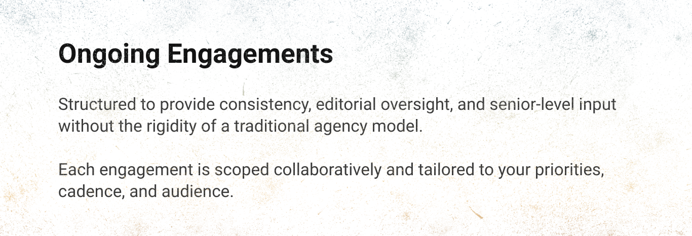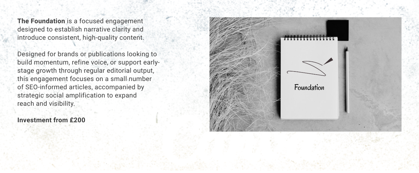 Discuss the Foundation Discuss the Growth Plan Explore the Editorial Partnership Send Project Details